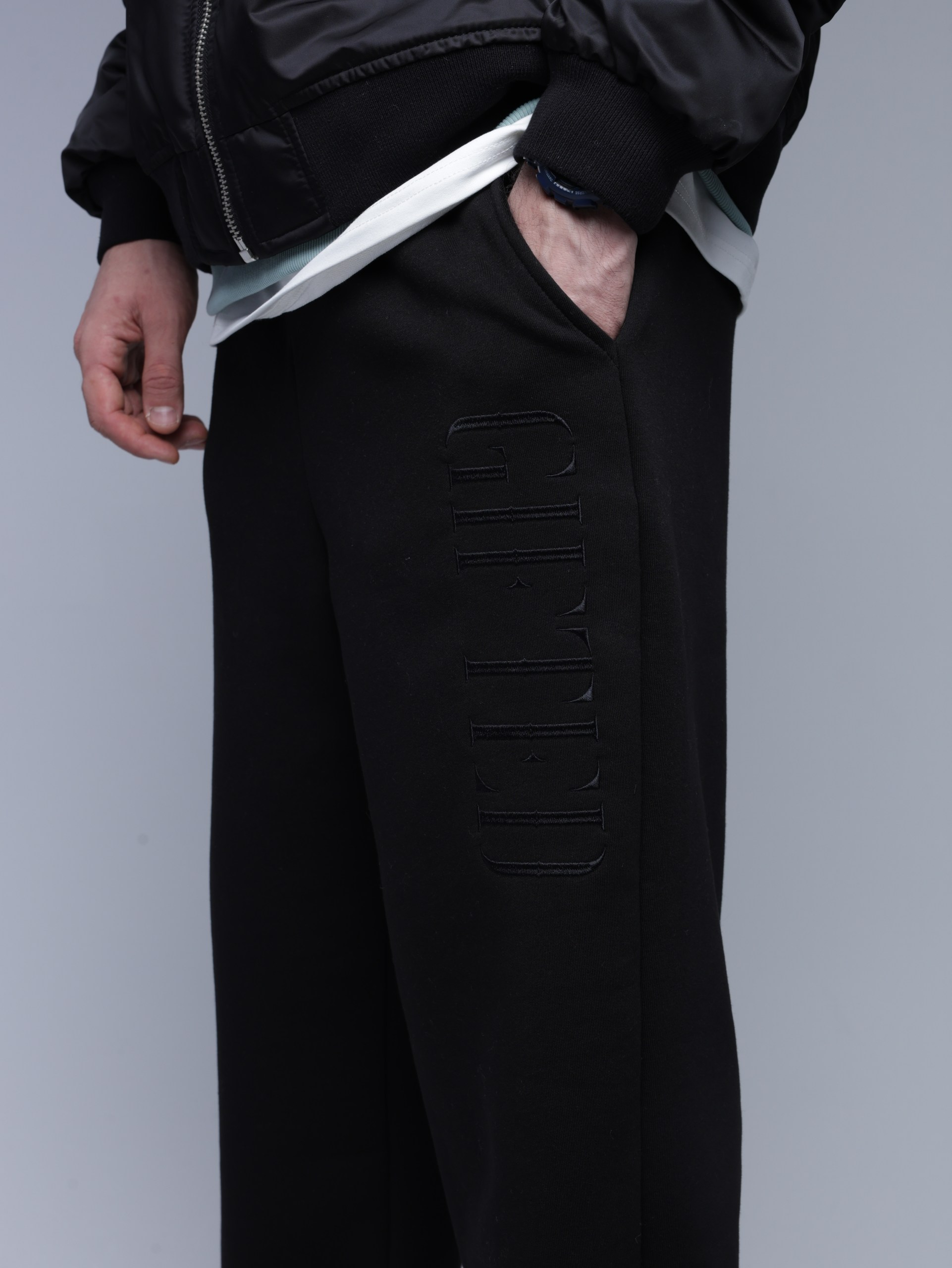 Широкие спортивные штаны.