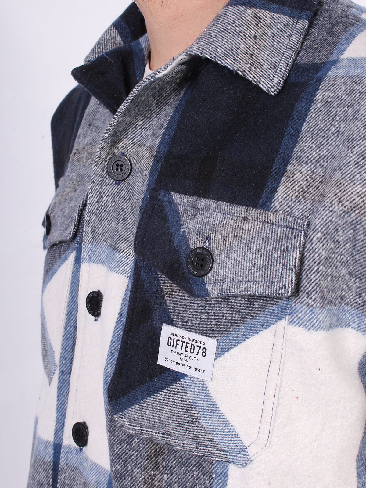 Оверсайз фит, без подкладки, два нагрудных кармана.