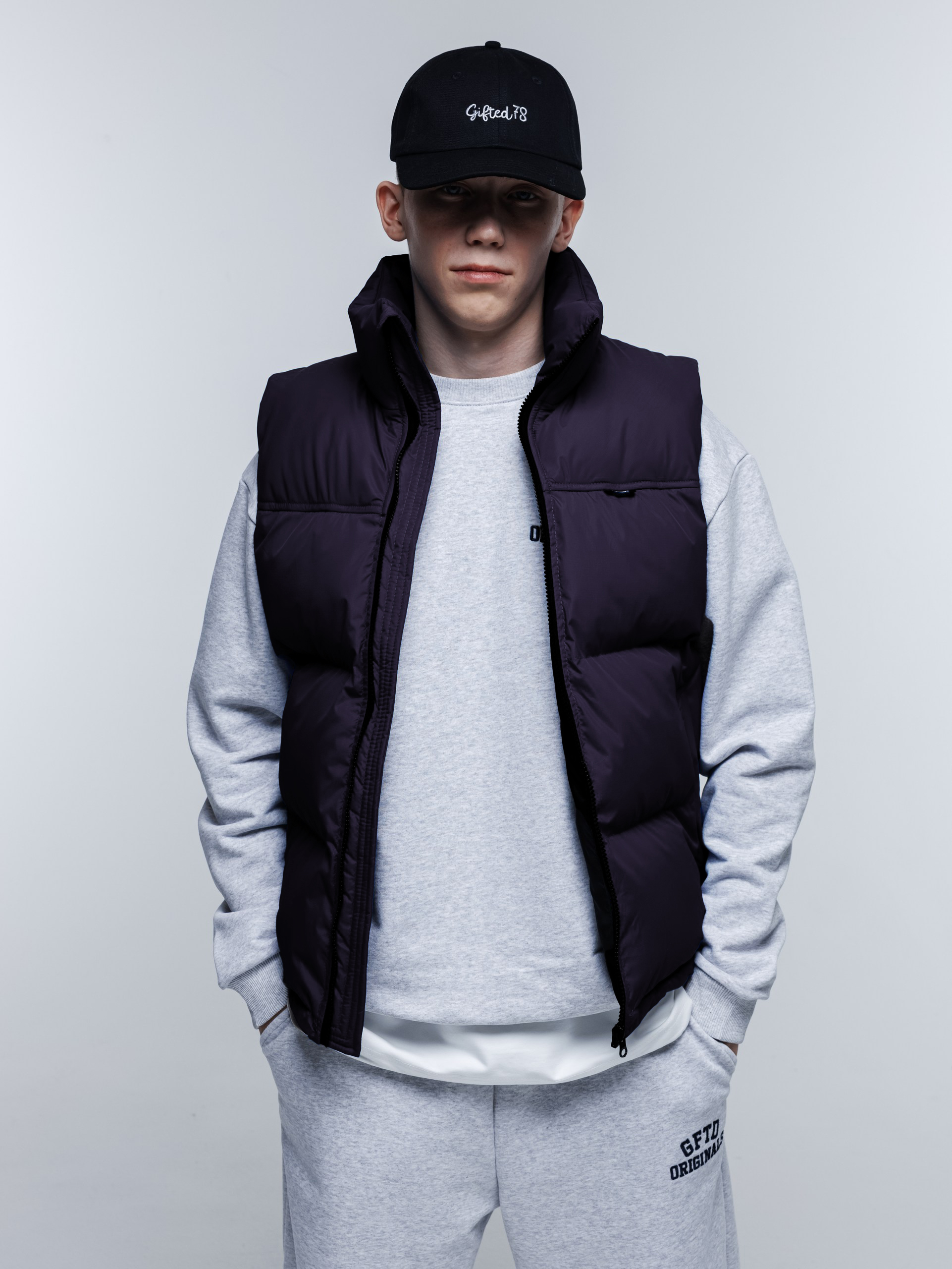 Серые меланжевые спортивки, Air Max, сумка через плечо + жилетка Puff и сами не заметите, как в плейлисте появится больше грайма.